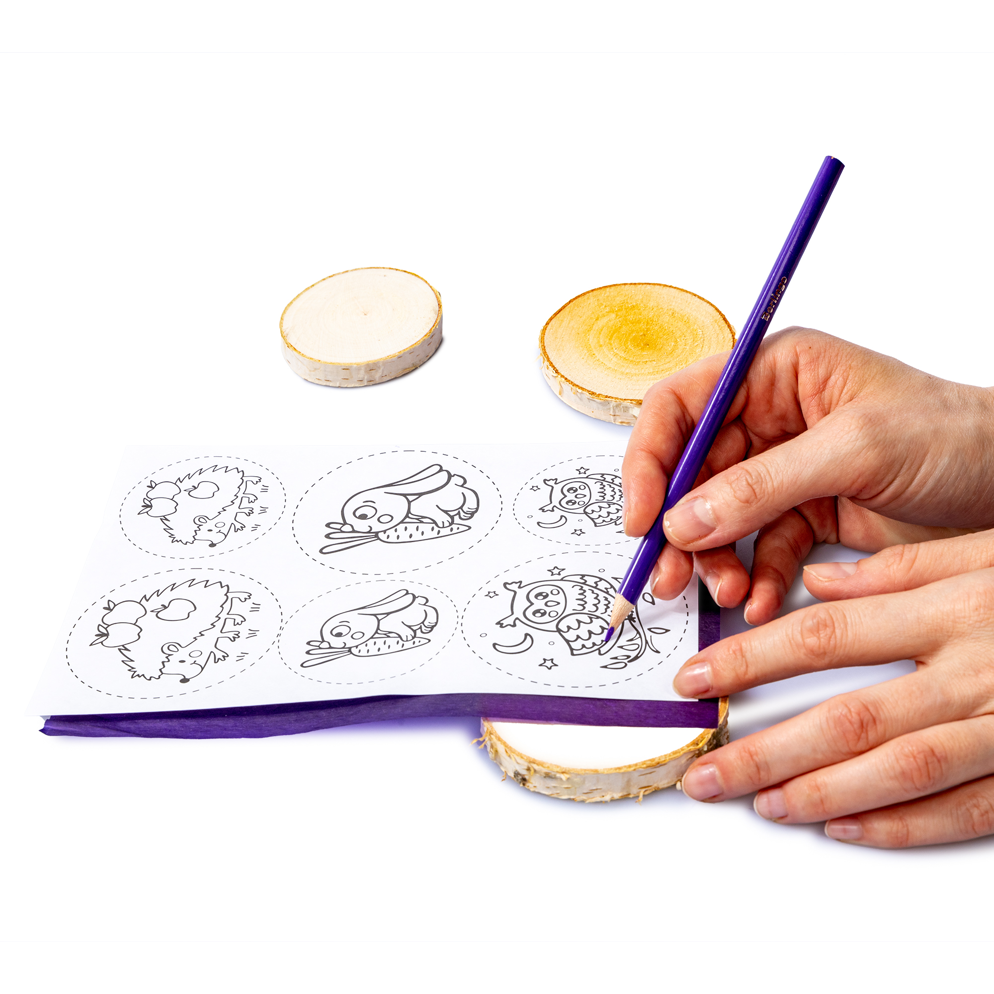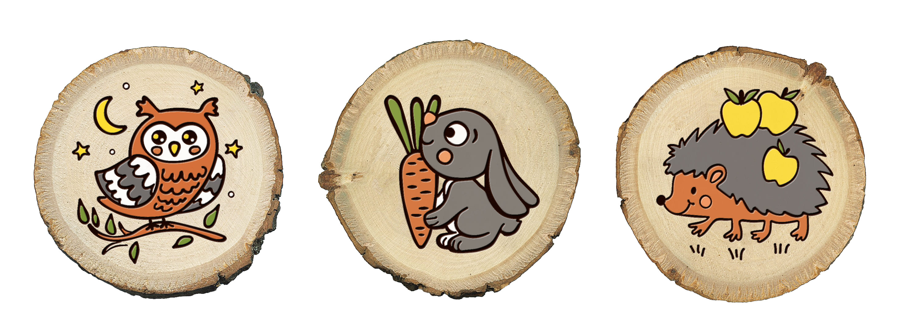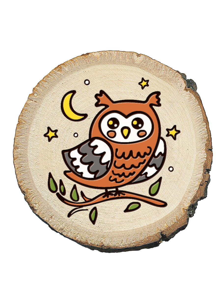 Выжигание на спилах «Сова, Зайка, Ежик» (спил малый)